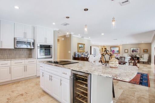 A bougainvillea covered trellis with a fountain entranceway welcomes you to this lovely home in highly sought after Marlwood Estates. Completely updated luxurious estate pool home on almost 1/2 acre lot with fantastic golf views overlooking 2nd tee box of brand new The Match course. Open floor plan with over 3000 square feet under air which includes several living spaces, chefs kitchen and large island, custom cabinetry, top line SS appliances. Spa master with carrera marble and large soaking tub. Massive back patio with pool and plenty of space for entertaining. Both AC units are new