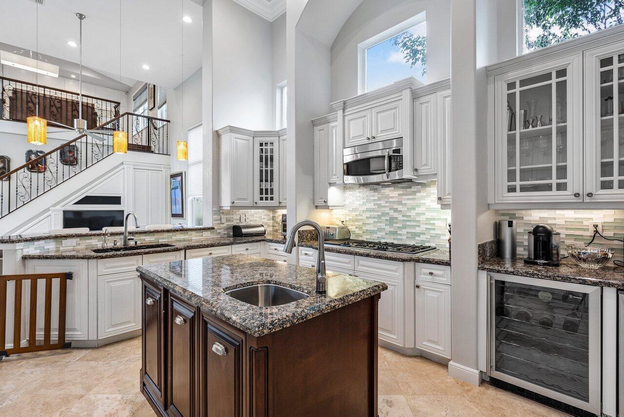 Inspirations of European architecture blended with high-end modern finishes and decor bring all of your attention to the details throughout this elegant estate. Immediately upon arrival, the polished marble floors are highlighted by ornate tile-inlays as you step into the formal living room, which features a striking 17' coquina stone fireplace and 19' coffered ceilings. Exceptional window treatments include electronic roll-down shades in the master-suite, living and dining rooms. Hunter Douglas window treatments and custom closet built-ins are in every bedroom, including the in-law suite, with additional custom storage in the garage. Upgrades throughout the home include a reverse osmosis whole-house water filtration system, hot water recirculating pump, newer pool pump and heater, Crestron whole-house surround sound, and brand new AC units including Lennox UV light air purification systems on Nest smart thermostats.