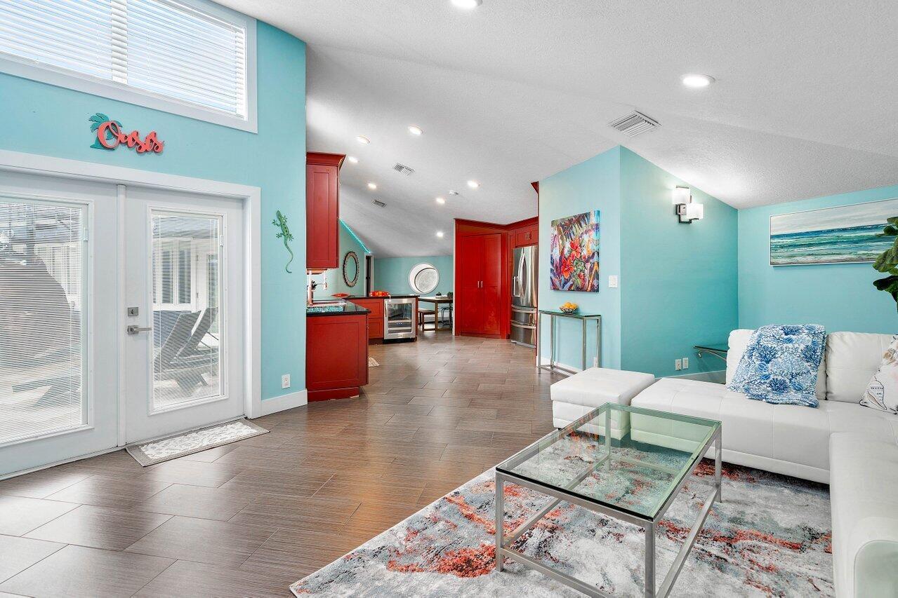 Welcome to the Hexagon Hideaway. One-of-a-kind custom built house that is a reminder of a Star Wars ship in one of the most exclusive locations in Palm Beach Gardens. This unique home features 4 bedrooms 3.5 bathrooms, a hair-salon, along with an 800 sq. ft. tiled deck, ideal for lounging, grilling or just enjoying the sea breeze since it's just 2 houses from the water. The separate downstairs apartment/guest house features 1 bedroom 1 bathroom, full kitchen & washer/dryer currently leased for 2k a month annually ending 05/19/2024. This incredible home is sold fully furnished and turnkey. Over1/4 acre of land with No HOA restrictions and ample parking with a massive circular driveway on a cul-de-sac dead end street. Perfect investment property setup as airbnb.