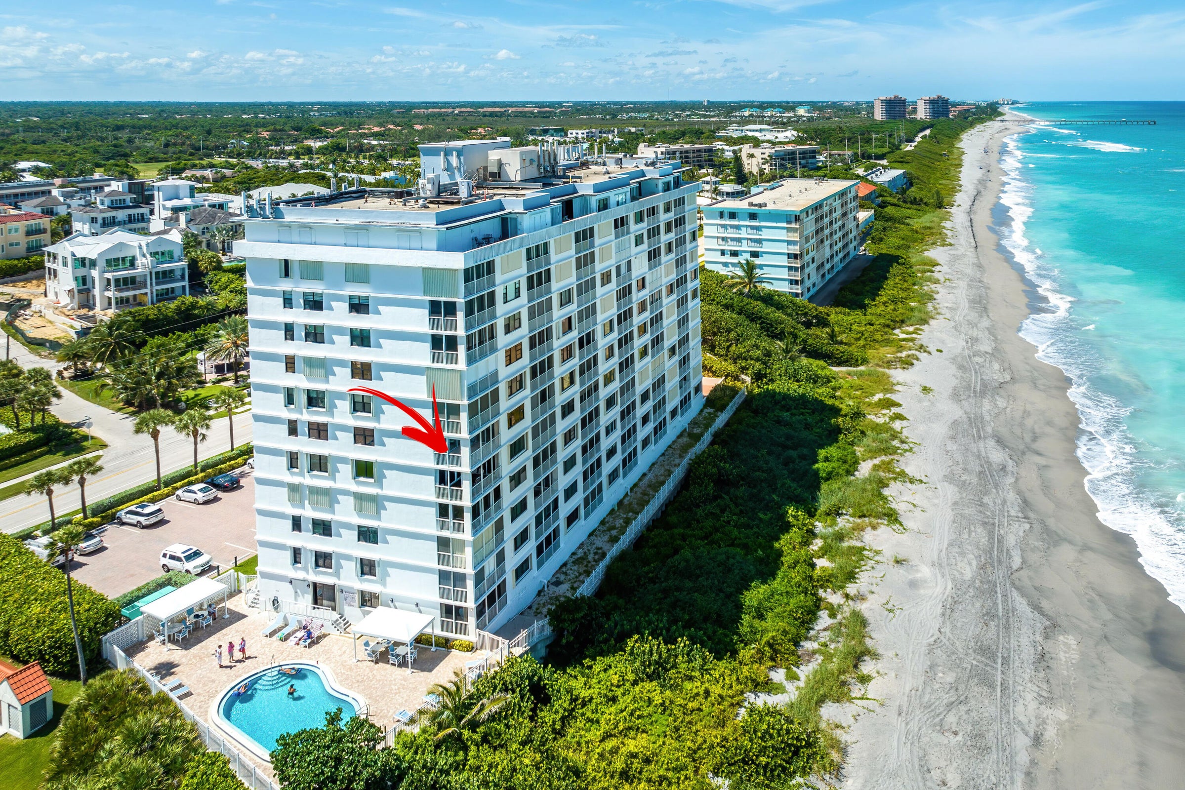 Wake up with an Amazing Sunrise every morning and enjoy one of the Greatest eastern and southern OCEAN VIEWS in all of South Florida! Endless Unobstructed eastern southern BEACH VIEWS! End the day with Beautiful Sunset Views. Don't miss your chance to own this rarely available East South West stack 3/2 home in The Tower on Juno Beach. Recent COMPLETE RENOVATION and REDESIGNED open floor plan to maximize the ocean views. Only a coupLE homes on the south stack of the building offer this floor plan. Renovations include BRAND NEW plumbing, electrical, dry wall and lighting. This home boasts beautiful quartz countertops in the kitchen and bathrooms. The sleek, modern and OVERSIZED KITCHEN is equipped with soft close white shaker cabinets, stainless steel appliances and a wine fridge
