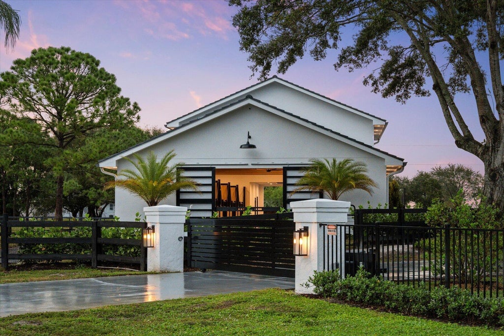Brand new 8 stall barn with 5 available stalls nestled in beautiful Paddock Park 2 with a short hack to WEF. This barn features 12x12 stalls with rubber interlocking mats, custom water filler for buckets, camera, and two fans. There are 4 wash/grooming stalls with hot/'cold water, custom divider that features a saddle rack, drying rack and trough for supplies. A half bath with a dyson hand dryer, laundry room with subzero fridge/freezer, icemaker and storage. A/C hay room with a drain for easy clean up. Feed room with custom grain containers, quartzite countertop and cabinets above for supplements. Tack room features 12 saddle racks, bridle and girth hooks and ceiling to floor cabinets for extra storage. Available for Season, Off Season and Annual