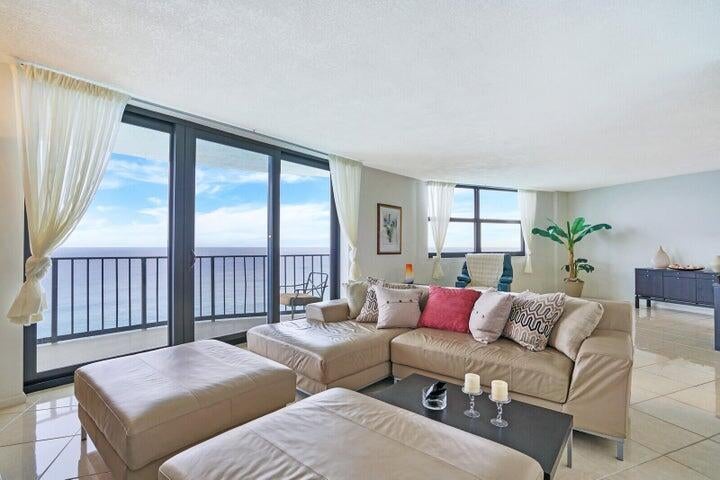 OFF SEASON FURNISHED 2 BR 2 BA rental available May thru November 2025. Outstanding direct panoramic ocean views from all rooms, wrap-around balconies w/ ICW & OCEAN. Impact glass. Bright & open living & dining, tile thru-out. KING bed in primary + 2 Full Beds in Guest BR. Custom walk in closets. Remodeled unit features an open kitchen w/granite countertops + stainless steel appliances + updated bathrooms. Washer/Dryer in hallway/ Upper Level Garage Parking #143 w/easy access to Connemara lobby entrance. Enjoy the tranquil Singer Island lifestyle at Connemara. Amenities include a heated oval shaped swimming pool, BBQ area, fitness facilities, tennis courts & the pristine beaches on the north end of Singer Island. Close to John MacArthur Beach State Park, boating, & fine dining