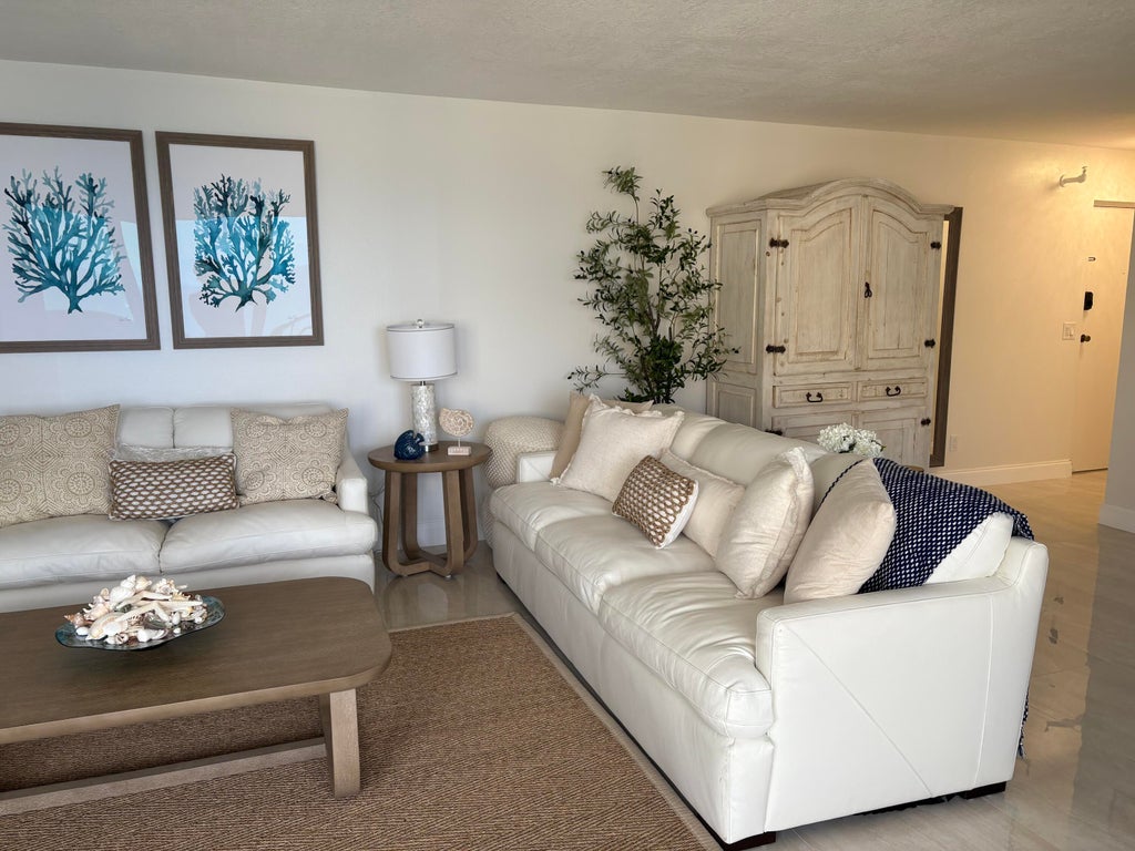 fabulous high floor east view from this newly renovated condo on the wide section of Singer Island Beach. Walking distance to shops and restaurants. Great place to spend fall and winter.